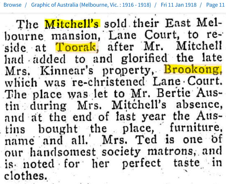 Seven months later, a notification appeared in the Melbourne “Table Talk” newspaper that a King’s Counsel by the name of Mr Edward Fancourt Mitchell had purchased Brookong.