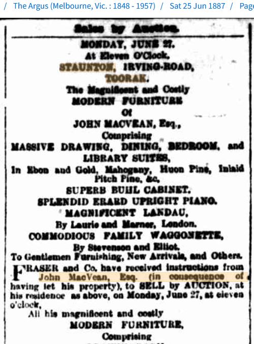 It was called “Staunton”, and here is the for-sale notice that I’m assuming John’s father, also named John Macvean, would have seen before purchasing it.