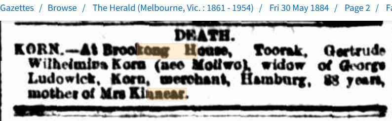I also managed to find this fascinating mention below, confirming that Mr Halliday had a link with the property, specifically the name “Brookong”, don’t worry, all will be revealed.