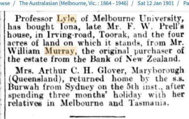 Next, there was a mention of the house in an article about an artwork sale from Iona that Mr Prell was holding. It explains what Professor Lyle, the new owner, did with Iona.