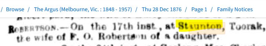 When I shared this letter in my previous post, I did note that Neville didn’t actually state the original name of the property, Staunton, but the fact that he named John as the previous owner was good enough for me to confirm that it was indeed the same house.
