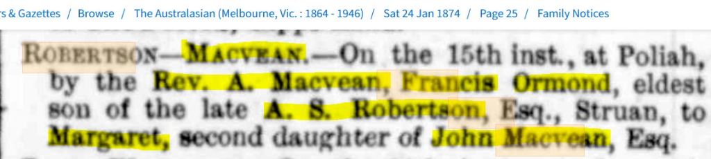 I know, Robertson, what? Well, Francis Ormond Robertson happens to be John’s son-in-law, as he was married to John’s daughter, Margaret.