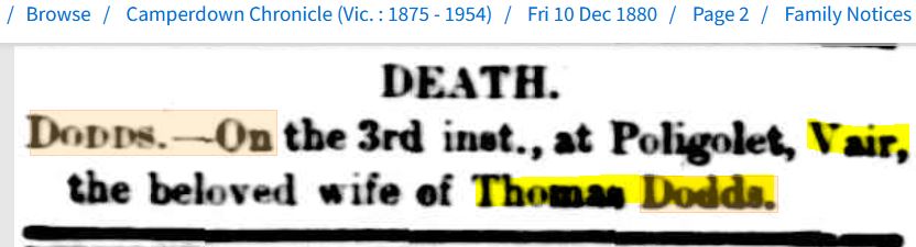 Before we leave William and move on to the new owners, I just want to share what happens to William in the 14 months after he leaves Brookong. Just five months after selling up in Toorak, this string of tragedies takes place.