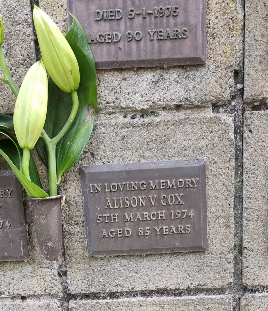 It took about 40 minutes of searching, even with the map but I eventually found the wall that Alison’s ashes are housed in.