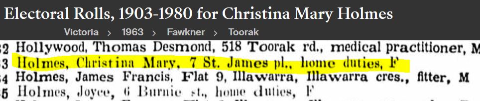 Unfortunately it doesn’t state which suburb they were from like the older notices but I managed to find both of them in the Electoral Roll listing for 1963 and Alison was back from Sydney and had moved in with Tina again.