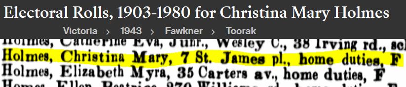 After this 1937 listing there are no other Electoral Roll listings in Ancestry.com.au until 1942 and neither Alison or Tina appear in it.