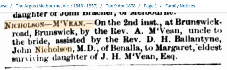 Margaret and John married on the 2nd of April 1878 in Brunswick Victoria.