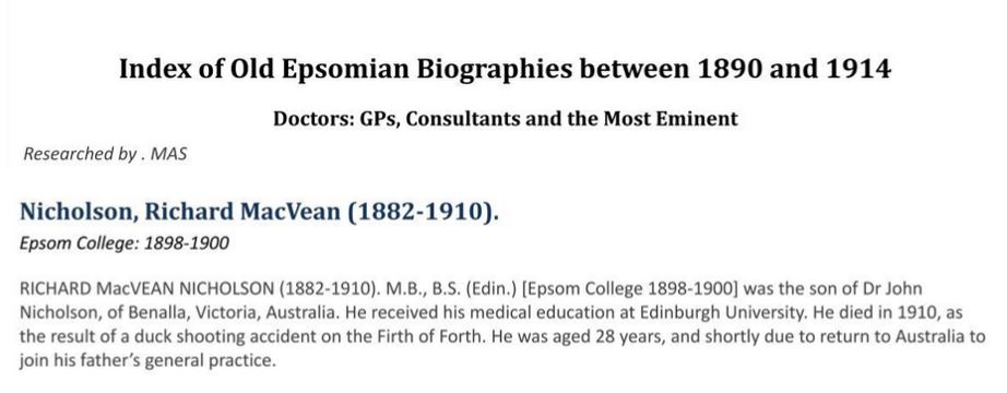 So now we can be confident in saying that Richard was sent to study at Epsom College to get that specialist preparatory medical education in readiness for his medical degree studies at Edinburgh University. The College had a reputation for developing undergraduates with a high standard of education for medical courses. https://eehe.org.uk/?p=25022