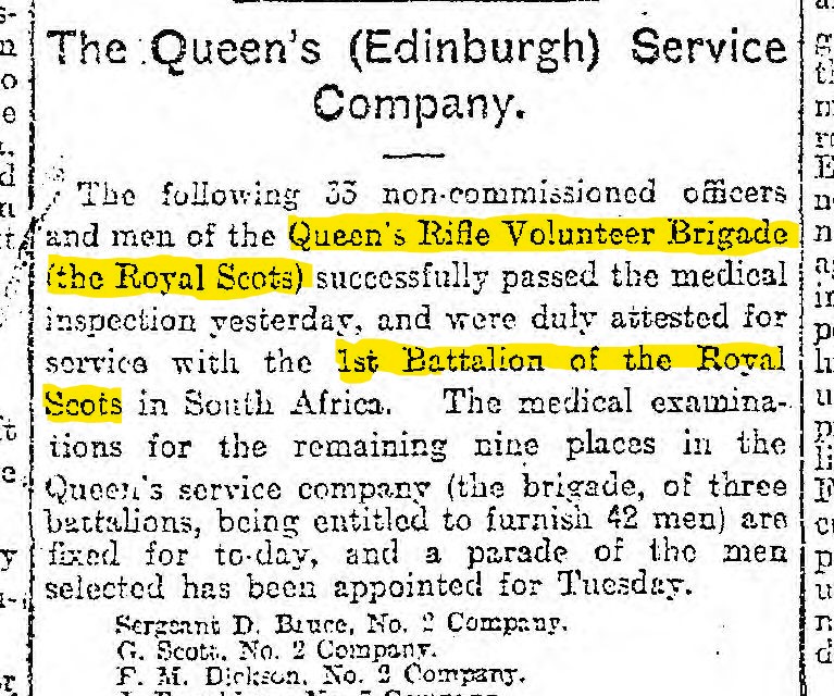 It of course was only seven years, at the time of Richard’s funeral since the second Boer War concluded. My mind started racing, could Richard have been involved as a part of the Volunteer brigade? If so, how likely is it that he made friends with people over in South Africa whilst fighting, and then somehow they made it back to Edinburgh to be included in his funeral article?