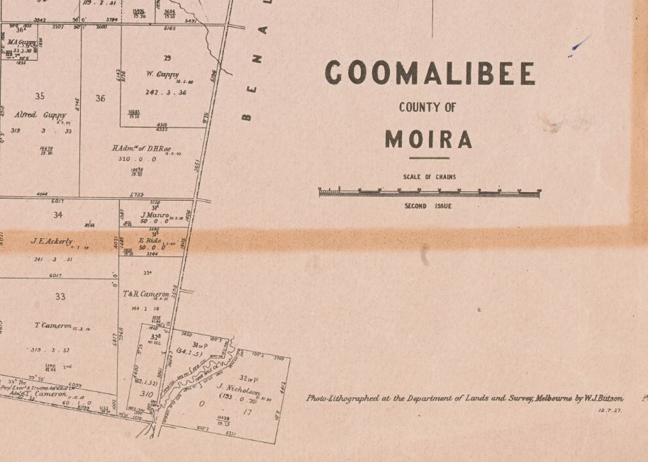 As you can see the scan of the Benalla Historical Society document above was not the best so I went looking for the property, and here it is straddling the parishes of Goomalibee and Benalla as stated.