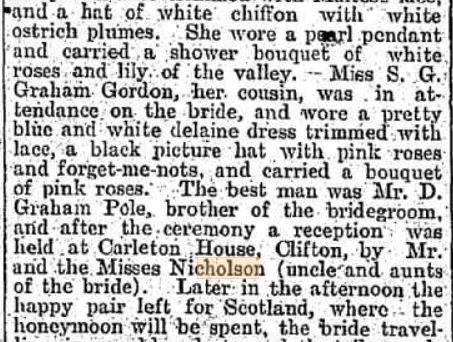 This next article was so out of left field for me. It mentions the wedding of Margaret Fell Christy and Mr William Fletcher Boadle and the fact that Richard acted as best man for William. Again there is no doubt that it is our Richard they are referring to, which is great.