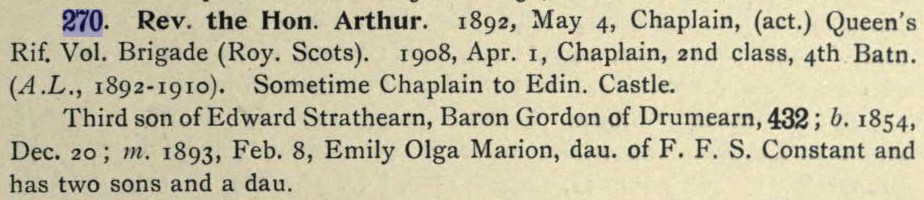It costs about A$20.00 to have an archivist check to see if it can be digitised and it can take up to four weeks to get an answer. Might leave that one for the next pay. It would be great to actually see the face of one of the men who performed Richard’s funeral service. I did find this nice little listing for Rev. Arthur Gordon from one of the other family trees in Ancestry. It comes from a publication titled, Gordons Under Arms’; a biographical muster roll of officers named Gordon in the navies and armies of Britain, Europe, America and the Jacobite risings. By Skelton, Constance Oliver, Mrs Bulloch, John Malcolm.