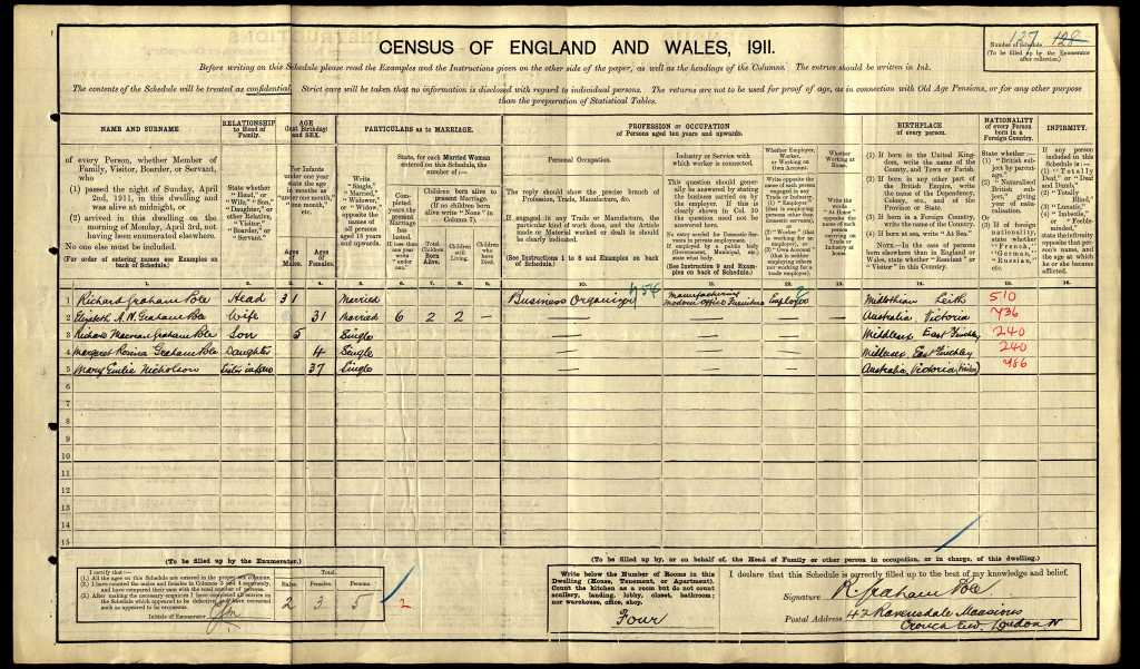 Then by 1881, Sarah (Richard’s grandmother) had passed away (1879) and only James and Anne remained with the assistance of four servants.
